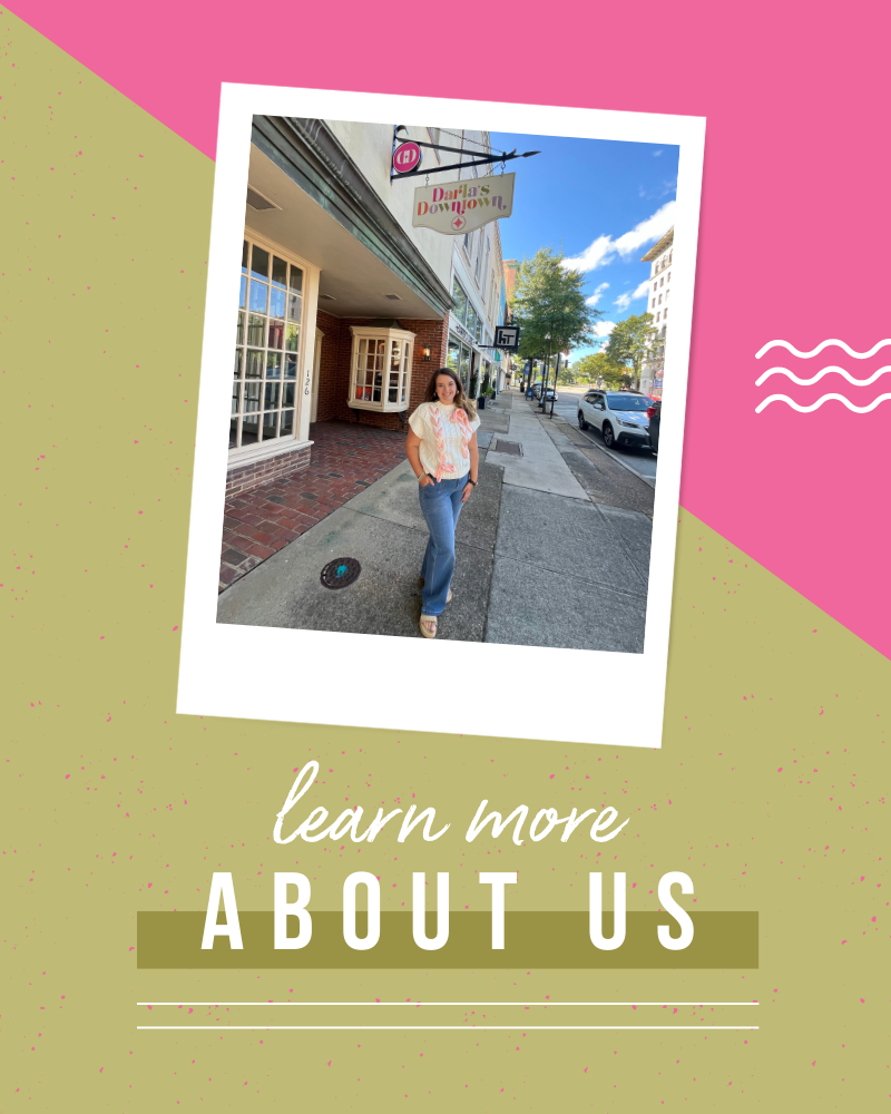 Thanks for finding our website! I'm Delaney, the owner of Darla's Downtown Boutique. I was born and raised here in Suffolk, and saw so much potential in our Downtown, I knew a boutique was a missing piece, and I thought, "Why not open one myself?" Although I can't claim to have opened Darla's on my own, this has been a labor of love with help from family and friends. I hope you'll stop by next time you're in Downtown Suffolk and introduce yourself! We love our community and neighbors and hope to see more retail make its way here in the future.