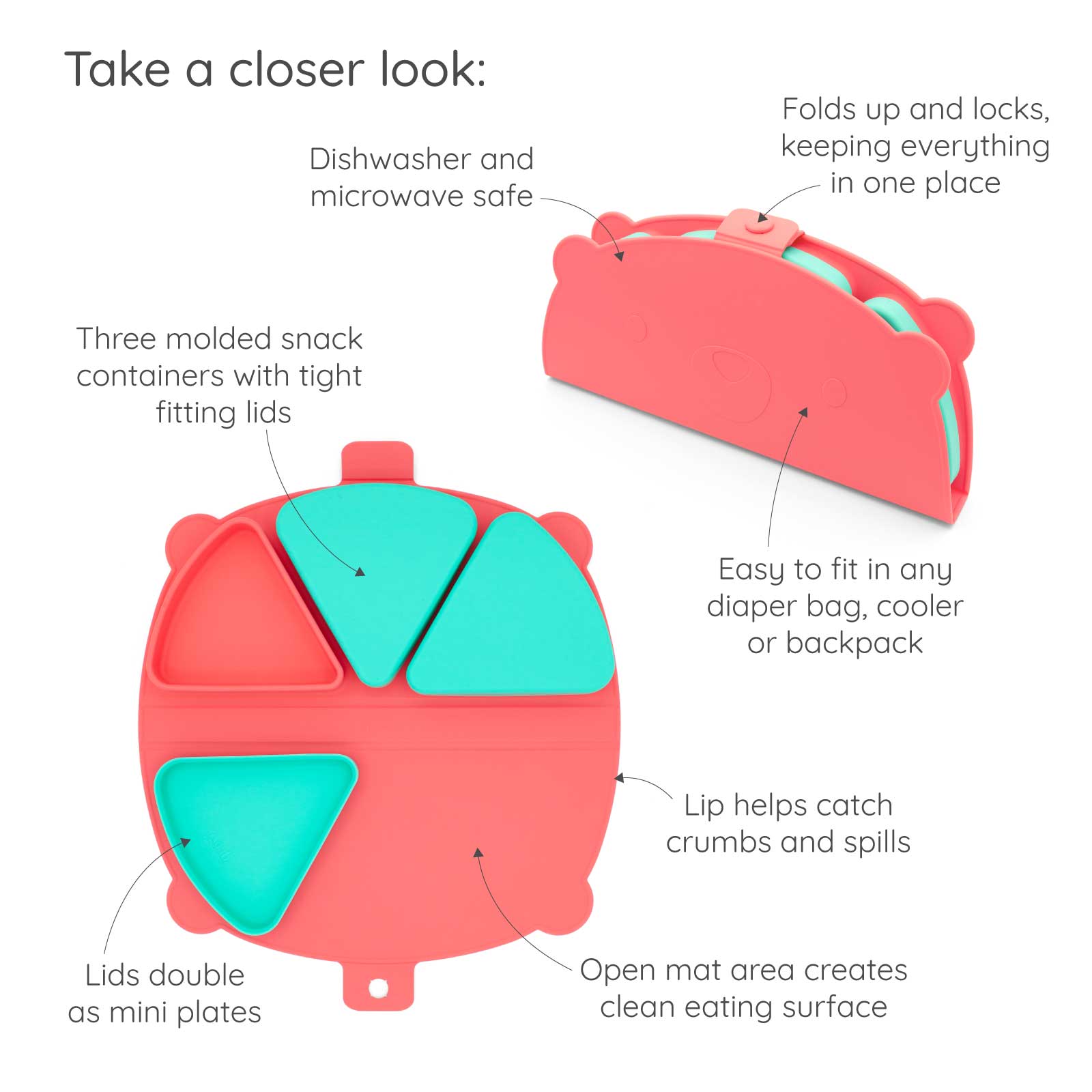 π± Portable Design: Folds up easily to fit into diaper bags or backpacks for convenient on-the-go snacking.