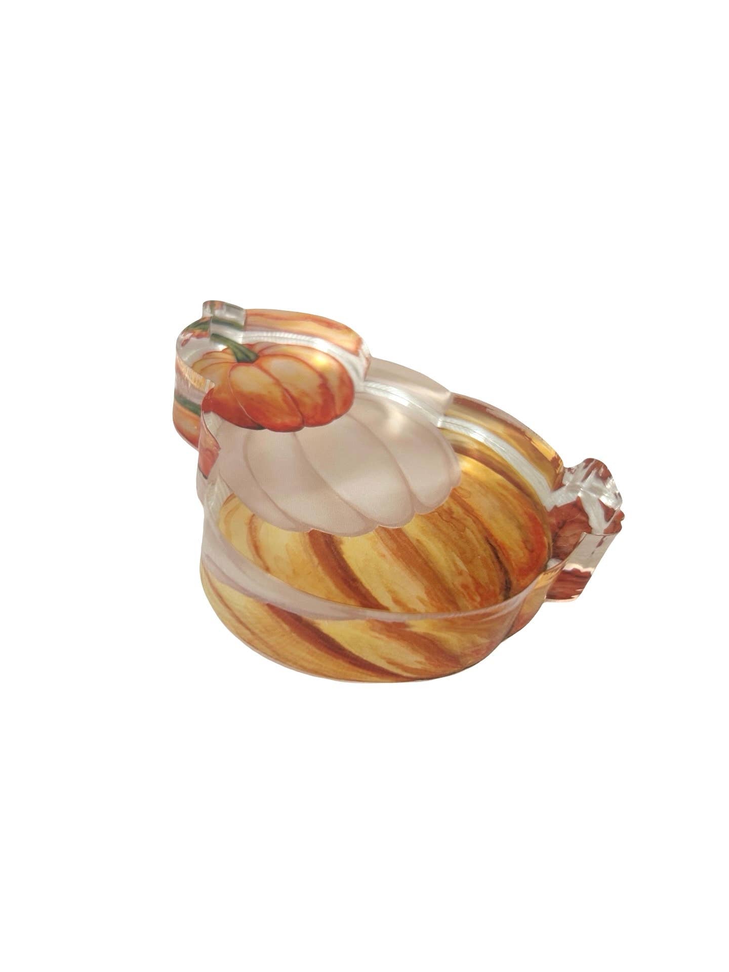 Celebrate the season with this charming stacked pumpkins acrylic napkin weight that brings autumn warmth to your table. Hand-polished from crystal-clear lucite and featuring festive pumpkin details, it keeps napkins in place while adding seasonal charm to any setting. At 4"L × 1.5"W × 1"H, it accommodates cocktail, luncheon, and dinner napkins with ease. Perfect for fall entertaining, Thanksgiving gatherings, or as a thoughtful hostess gift, it's a versatile piece that works beautifully as a decorative accent or functional paperweight year after year.