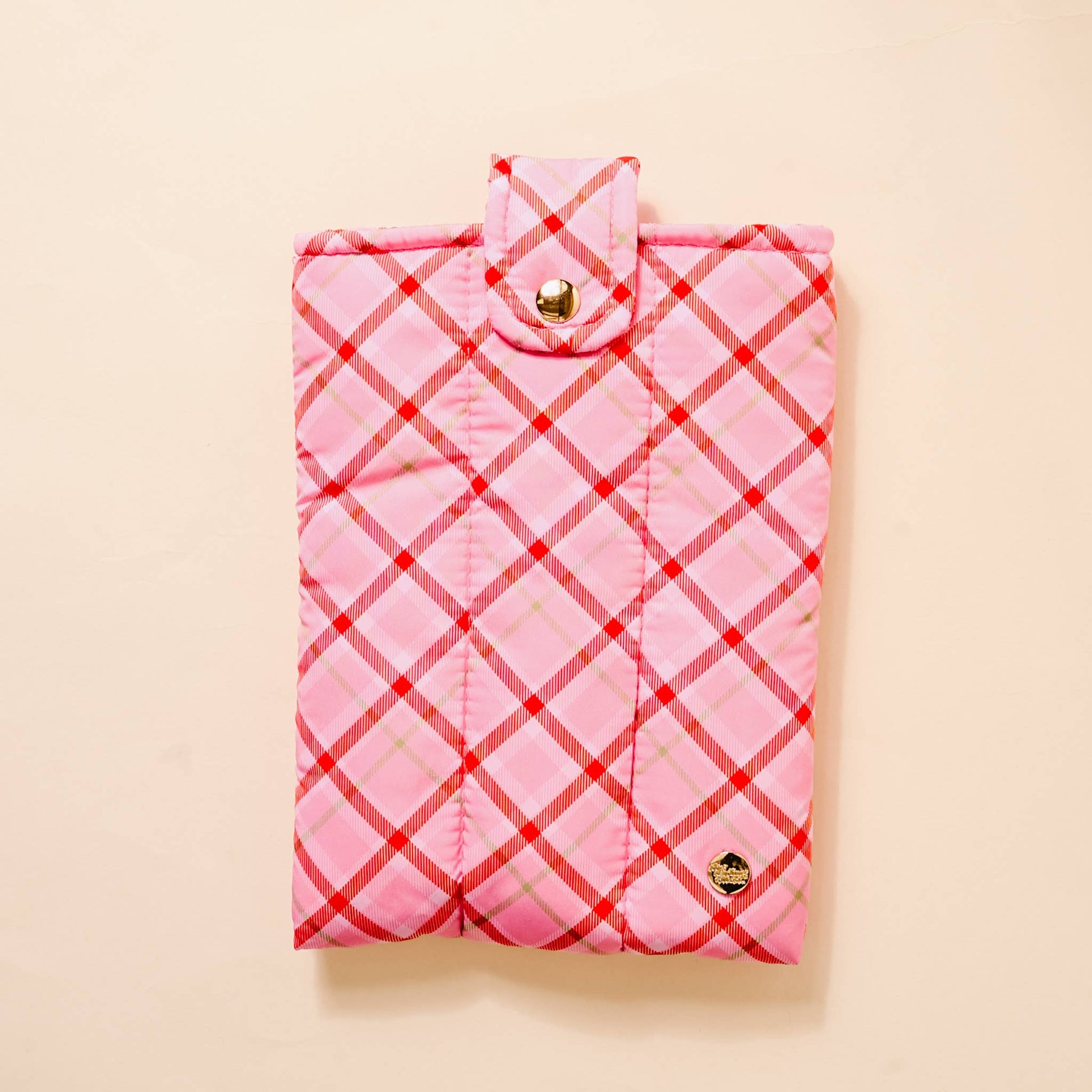 Give your books the cozy treatment they deserve! This Festive Plaid book cover features plush polyester padding that cushions your reads from bumps and spills during travel or daily adventures. Elegant gold snap closures keep pages secure while adding a sophisticated finishing touch. Sized perfectly for standard books (11"l x 8"w x 2"h), it's the stylish shield every bookworm needs. Lightweight, durable, and undeniably cute—your favorite stories have never looked better protected!