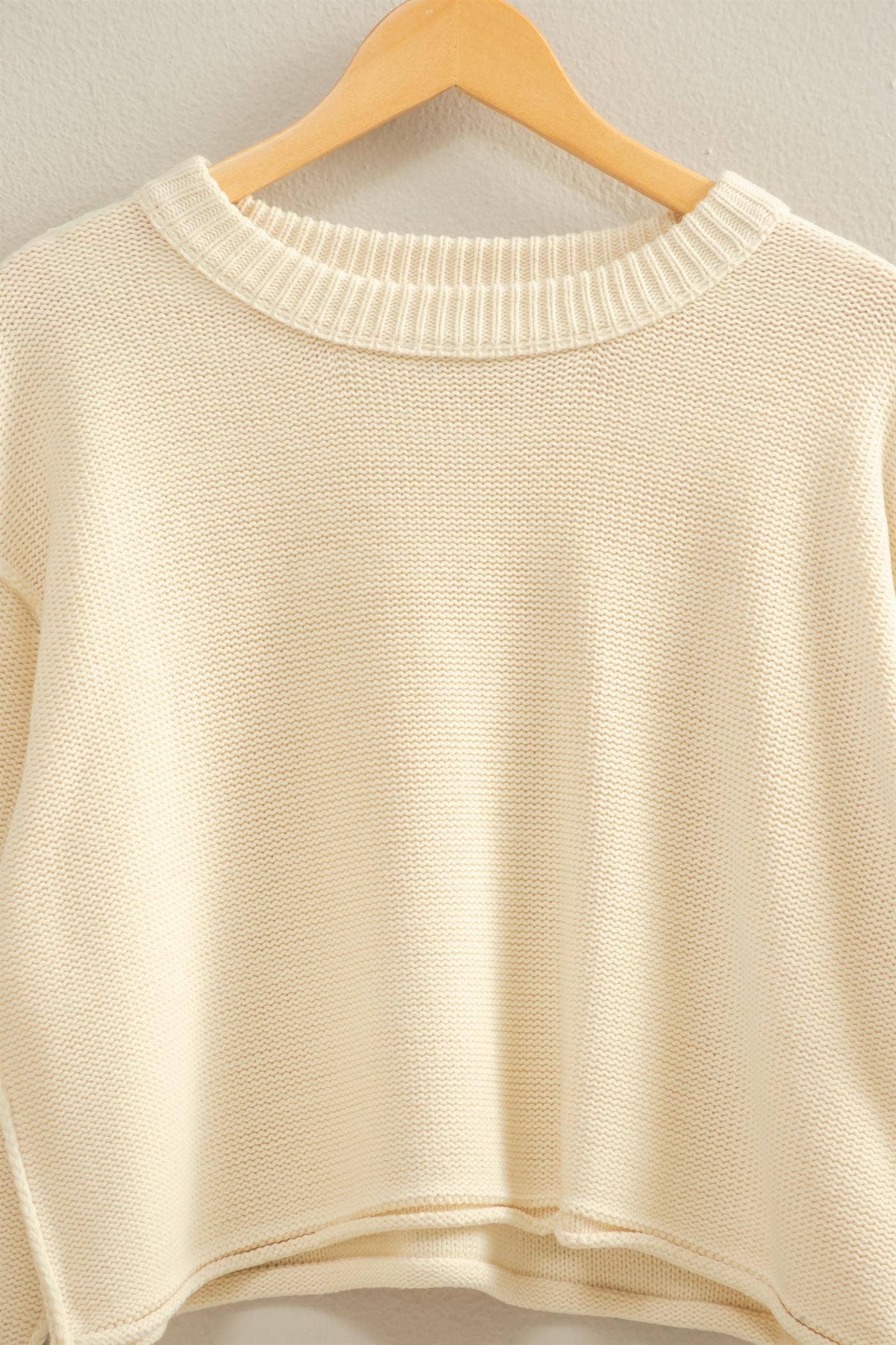 Get cozy in style with this Cropped Oversized Knit Sweater! Its relaxed fit and wide, ribbed crew neck bring comfy vibes while the drop shoulders and cropped hem add a trendy twist. Perfect for layering over your favorite tee or pairing with high-waisted pants for that effortlessly cool look. Made from 100% acrylic, this sweater is your new go-to for easygoing days and breezy transitions. Our 5'9" model rocks a size small—designed with love in the USA!