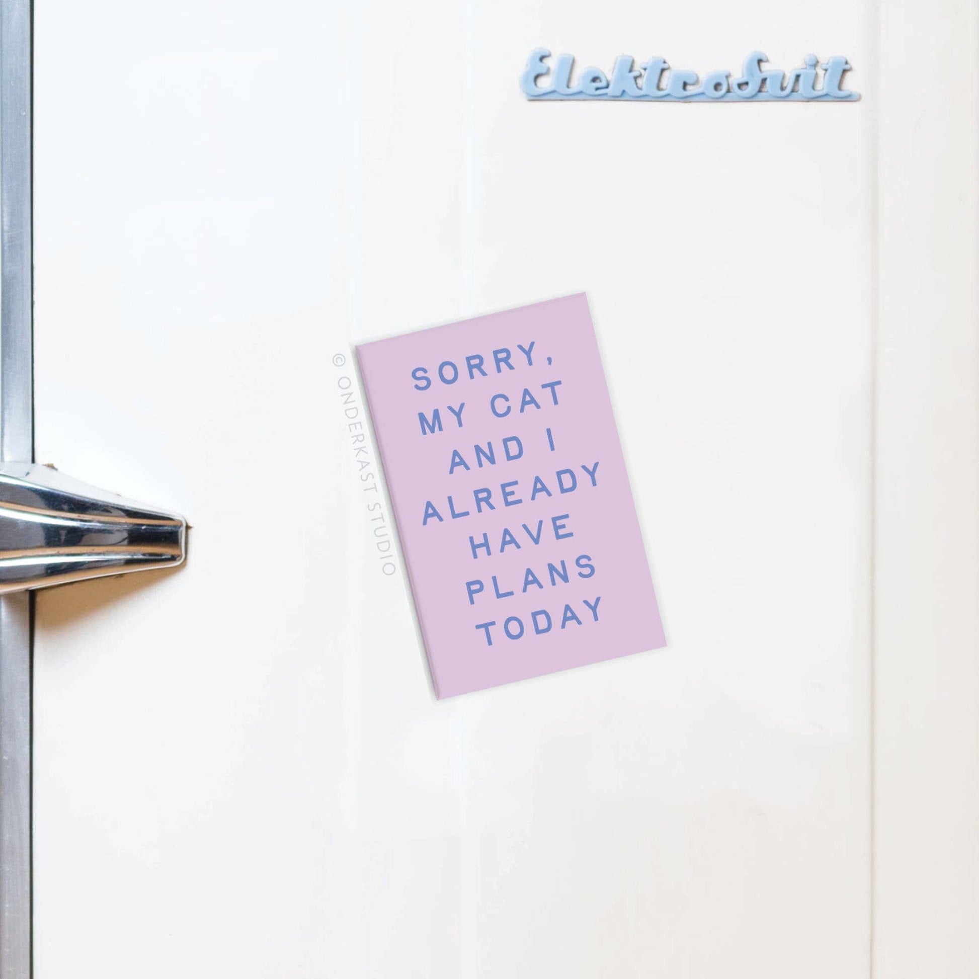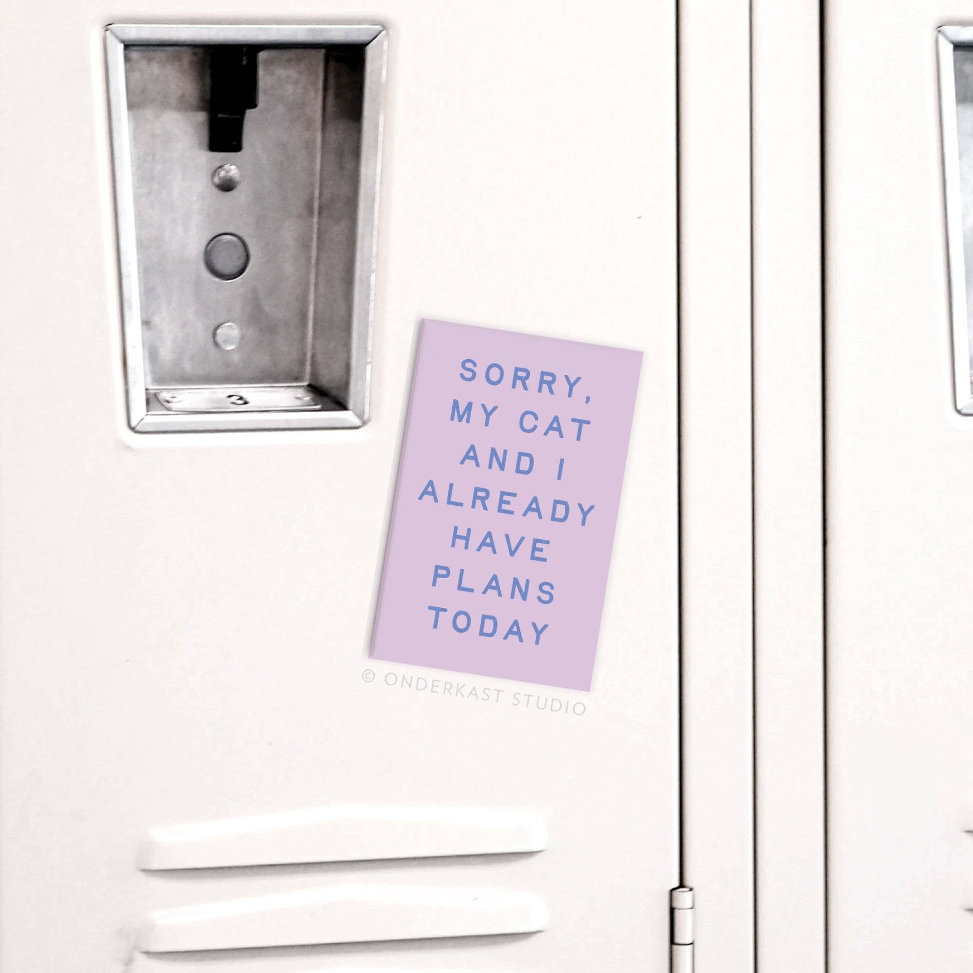 This playful "My Cat and I" rectangular magnet measures 2" x 3", making it a perfect eye-catching addition to your fridge or any magnetic surface without taking up too much space. It features a metal shell with a flat magnetic backing and a clear protective mylar cover on the front. The vibrant colors really pop, ensuring the design stands out. Proudly crafted and made in the USA, this magnet combines quality with charm!