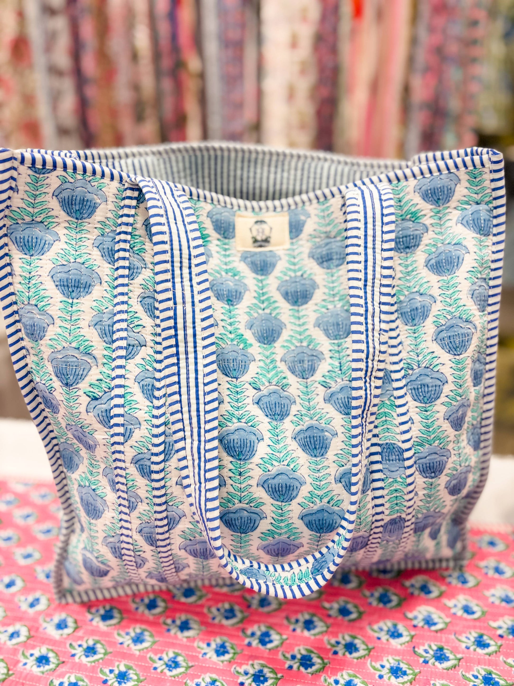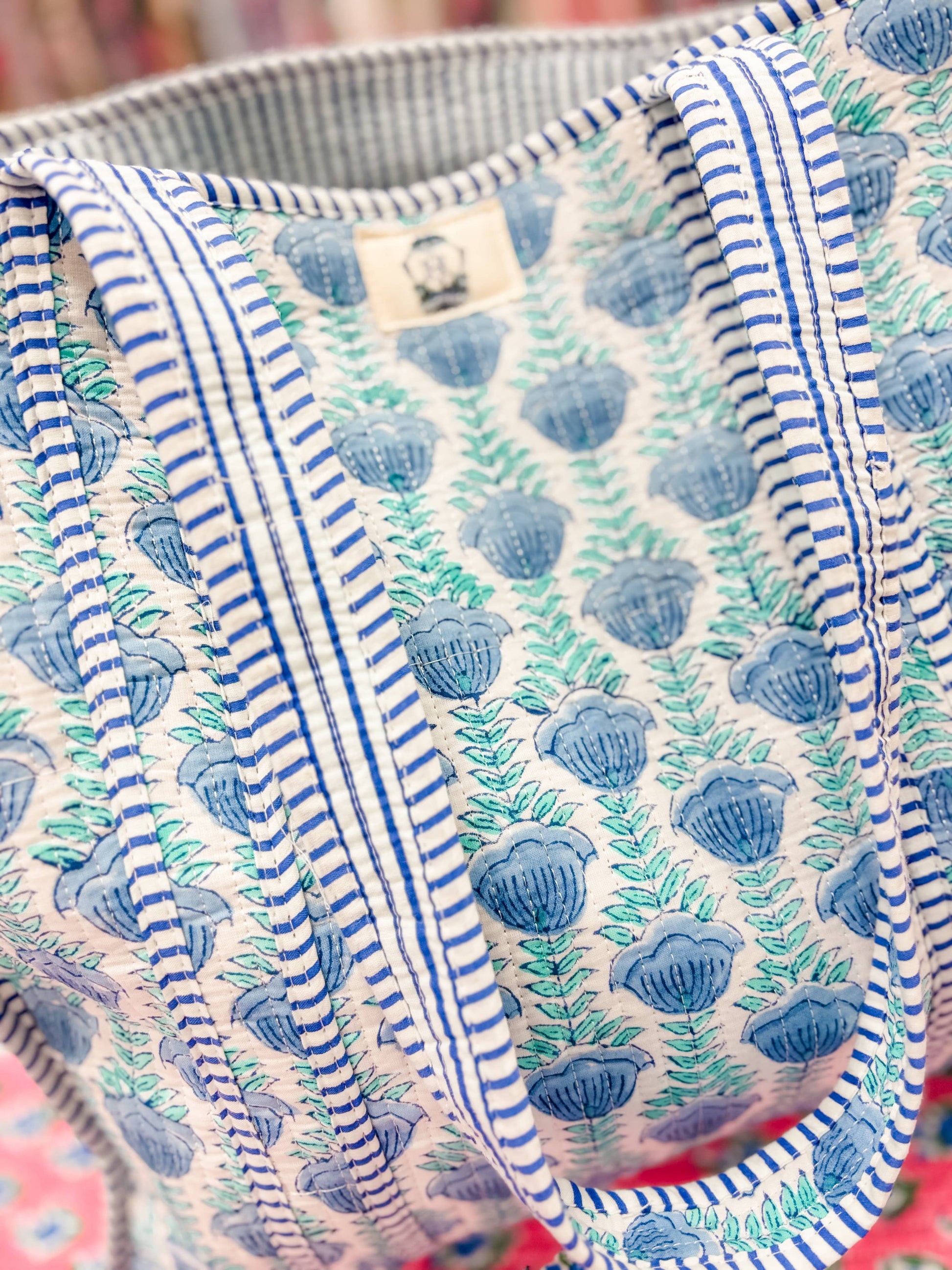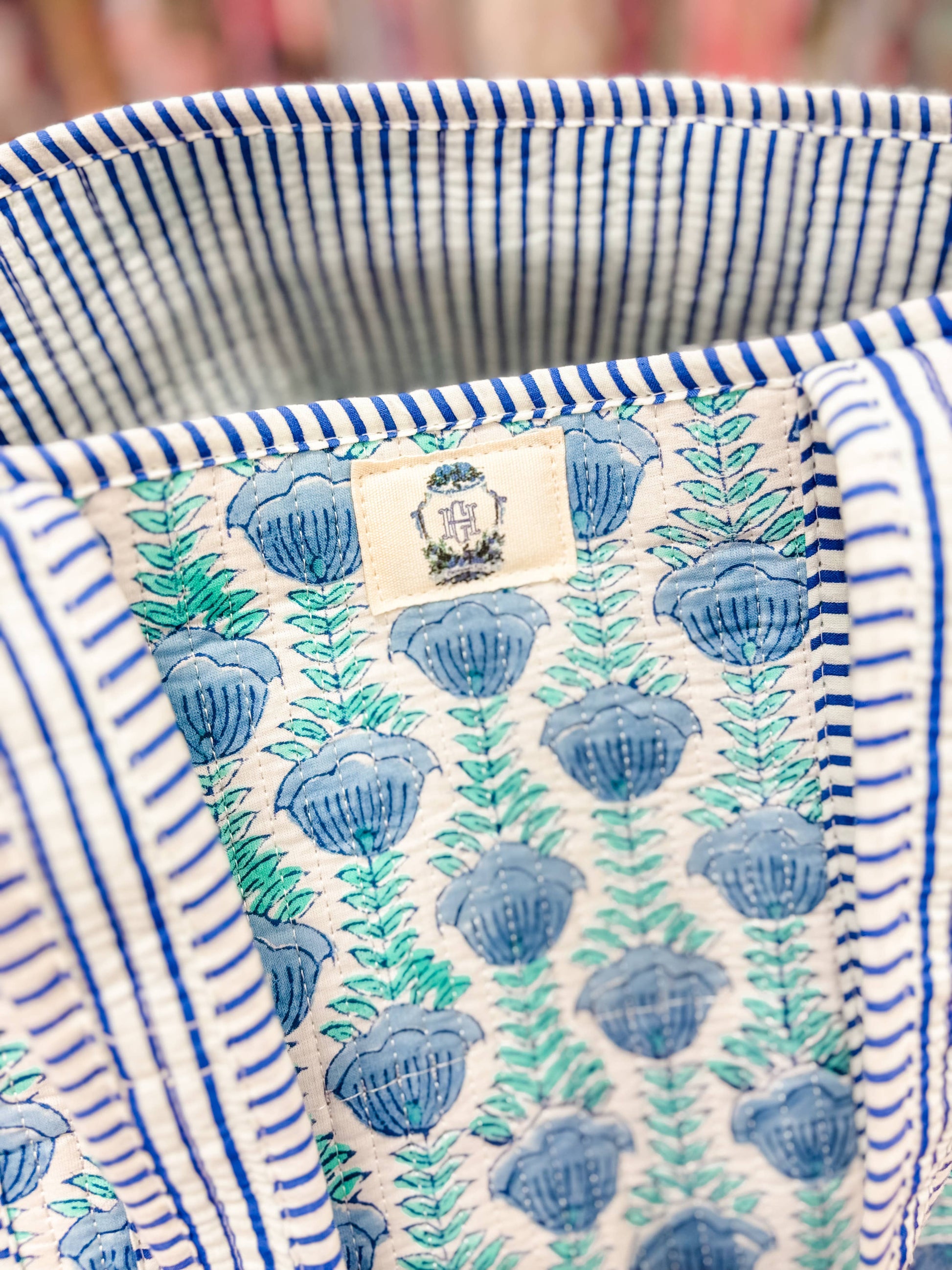 Say hello to the Heart of Grace Quilted Tote—soon to be your new favorite! Hand-quilted and crafted in India with charming block printing, each bag is uniquely yours thanks to natural color and pattern variations. Measuring about 16” x 15”, it’s perfect for carrying your essentials and includes a handy inside pocket for your phone. No zipper, just easy, breezy style. Ideal for beach days, travel, or coastal adventures with a playful touch.