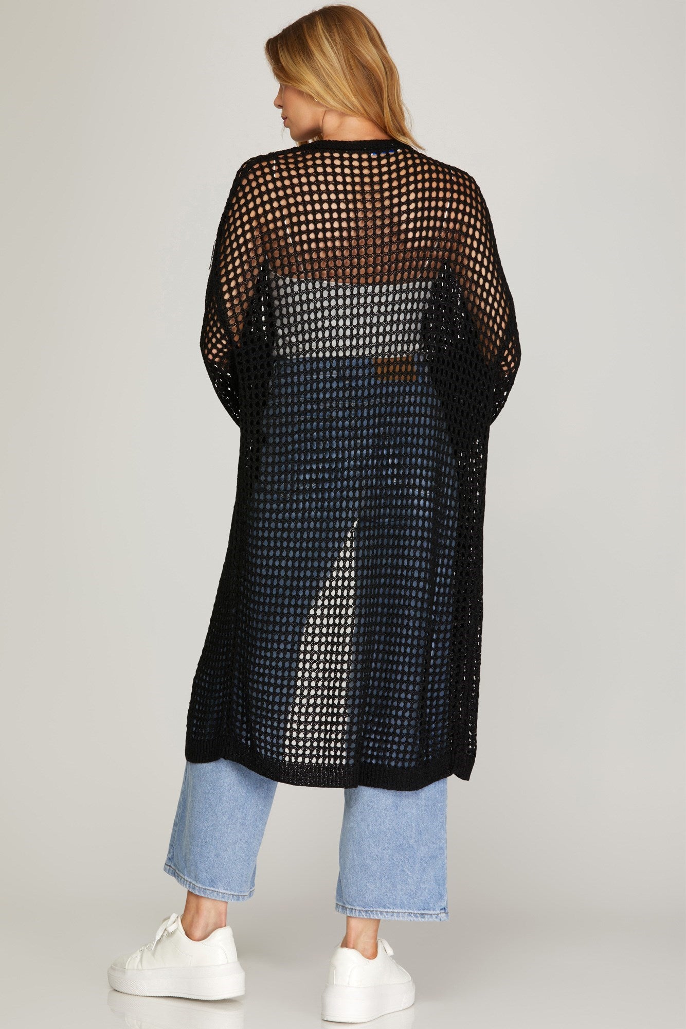 Wrap yourself in effortless style with our Sheer Sweater Cardigan. This open front cardigan boasts long sleeves and a sheer material for a comfortable and chic look. Stay cozy and fashionable all day and night. (Slay in sheer, all day, with this cardigan.)