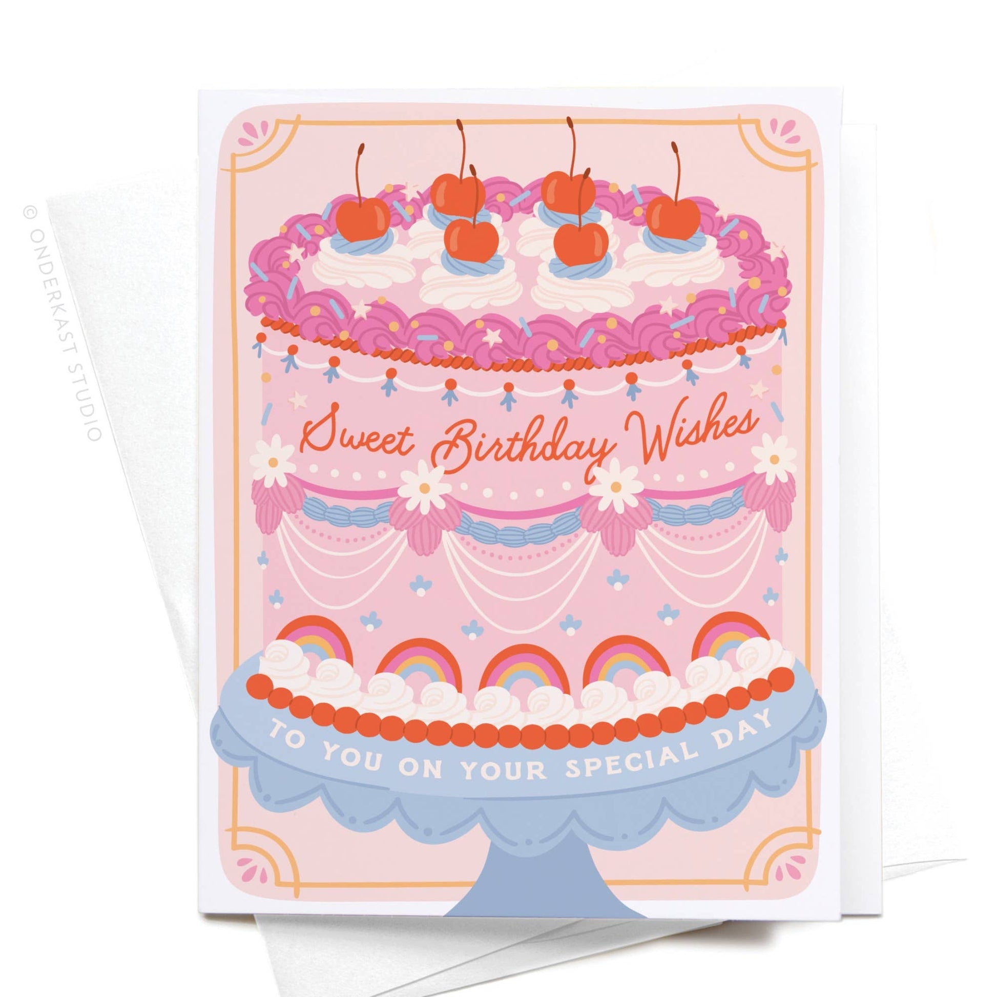 Sweet Birthday Wishes Retro Cake Greeting Card