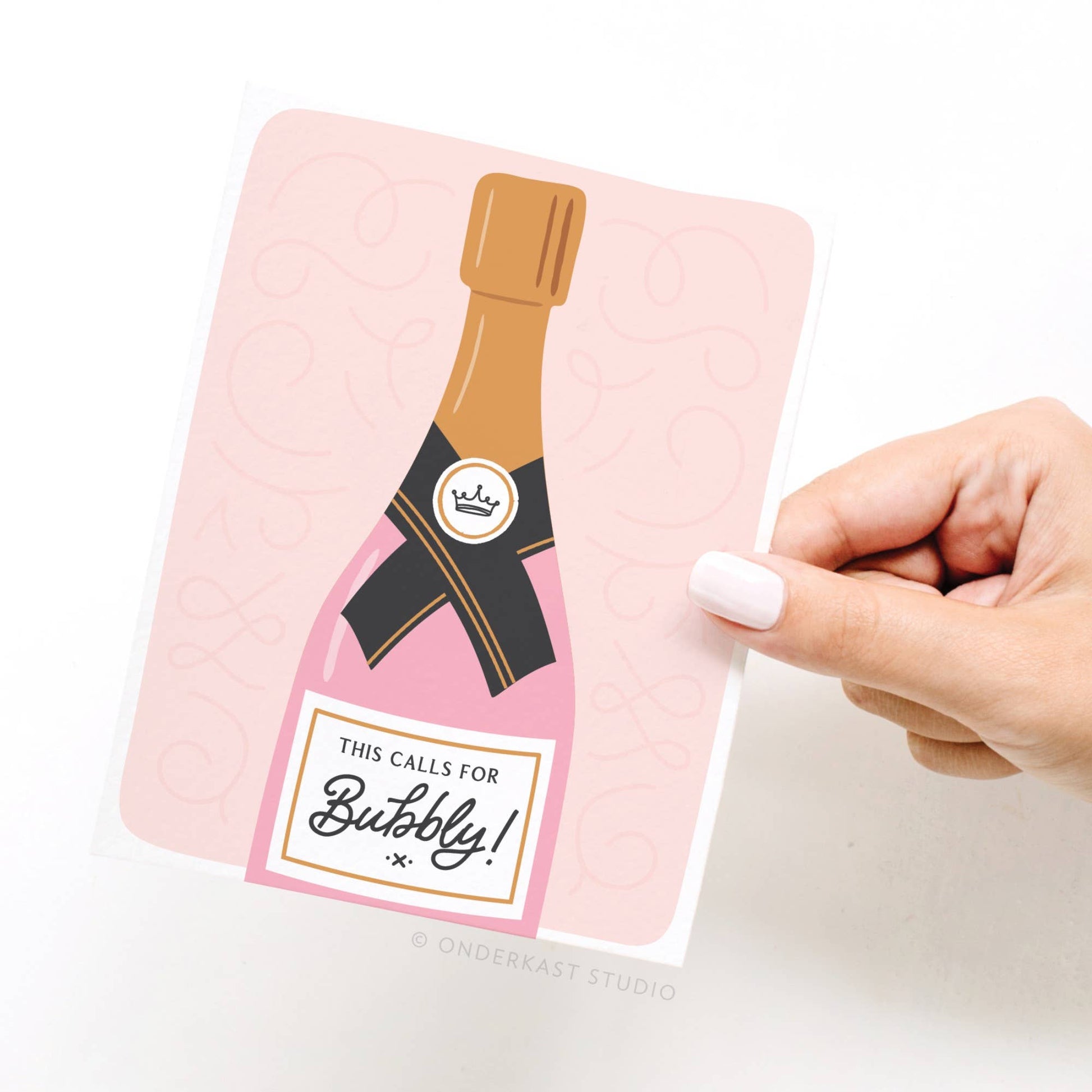 Celebrate in style with this playful "This Calls For Bubbly" greeting card, sized A2 (4.25” x 5.5”). Printed on smooth, thick white cardstock, it offers a premium and sturdy feel. Each card comes with a matching white square flap envelope and features vibrant, eye-catching colors. The set is protected in a clear open-top sleeve to keep it clean and safe. Proudly printed and hand-assembled in the USA, it’s perfect for popping the cork on any special occasion!